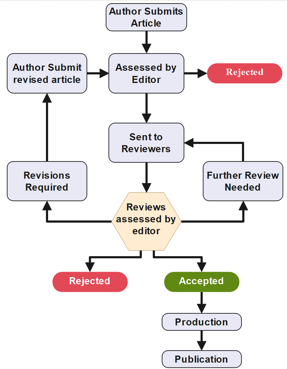 The peer review process generally includes the following stages: initial editorial assessment, assignment to independent reviewers, evaluation and recommendations, author revision (if required), final editorial decision, and preparation for publication.
